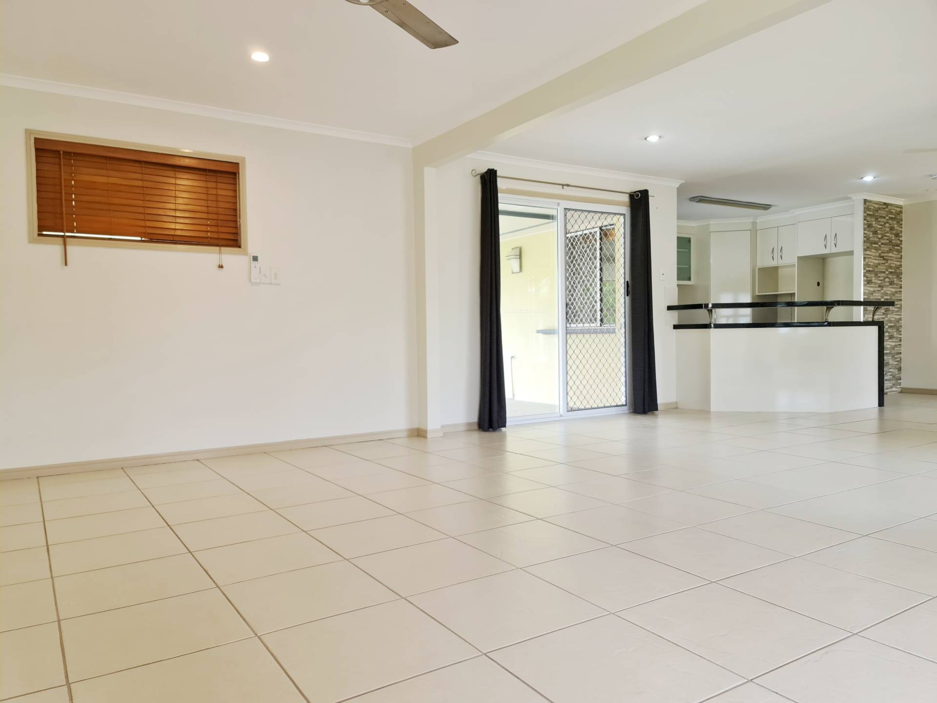 * Large open plan living space with tiled flooring throughout the main living areas for easy maintenance & carpet in bedrooms