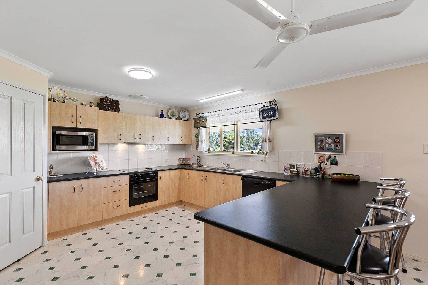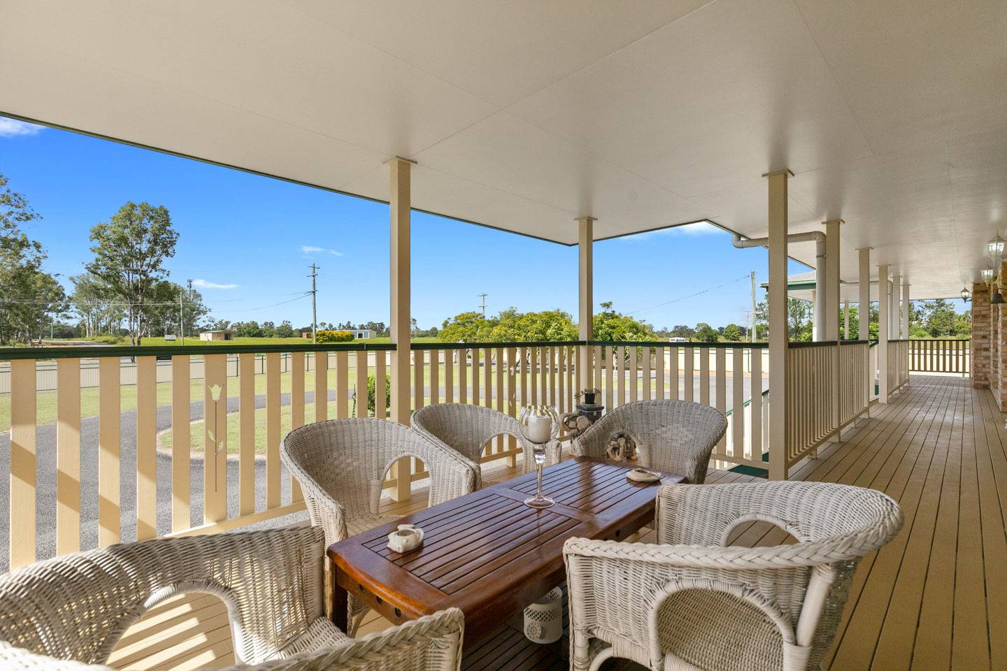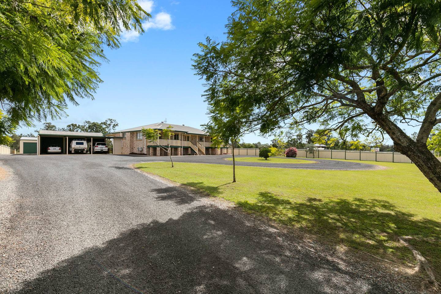 The large kitchen is generous in size with stainless steel appliances including fridge, dishwasher and gas cooking plus a large walk-in pantry, plenty of bench space and breakfast bar.  The front verandah runs the length of the house whilst the back deck offers a relaxing outdoor space off the family room and overlooks the backyard.  There is a 3 bay colorbond shed with 3 bay carport offering all weather access to the house.  The large shed behind the house includes a hoist with room to house multiple vehicles plus a caravan or boat port attached with ample height for a RV.