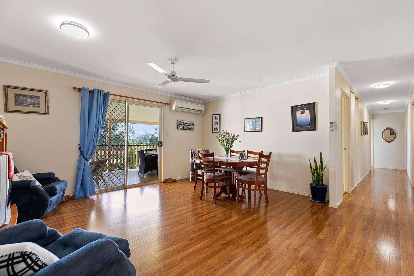 Hidden behind a colourbond fence to provide privacy, this well maintained brick home offers suspended timber floors in the living areas with carpet in the bedrooms for comfort underfoot.  Boasting 4 bedrooms with master suite featuring air-conditioning, large ensuite, walk-in robe and access to the front verandah. The 3 remaining bedrooms are all double in size and have built in robes and ceiling fans with bed 4 offering access to the front verandah too.